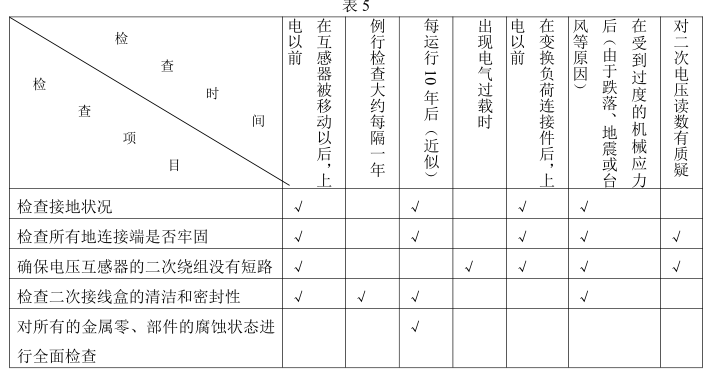 為了更好地使產(chǎn)品運行,我們建議按表 5 的項目及時間檢查,在檢查互感器時按表 6 清單檢
